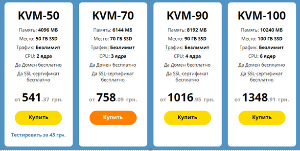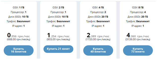 Ниже представлены скриншоты предложений по Cloud VPS и «обычному» VDS KVM хостингу одного и того же украинского провайдера, название которого мы не будем здесь рекламировать.